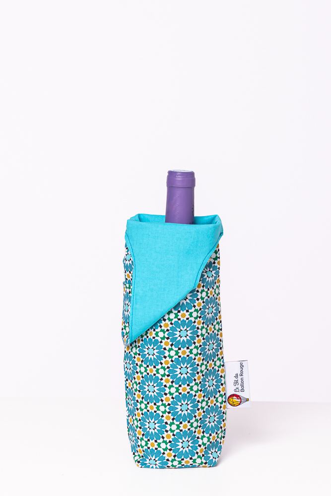 Sac porte-bouteille Mosaïque bleu. Pour bouteille d’environ 25 à 30 cm maximum de haut.